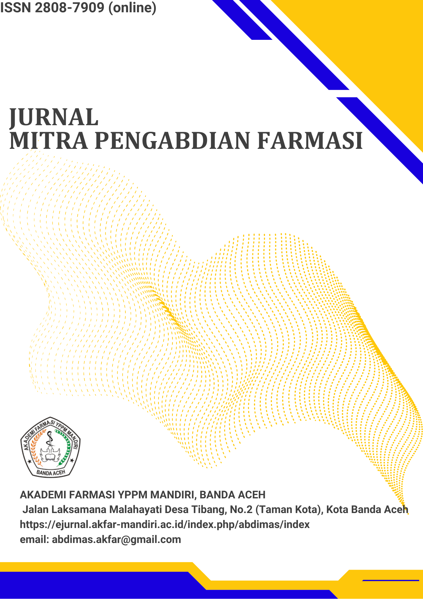 Jurnal Mitra Pengabdian Farmasi merupakan jurnal yang merangkum hasil-hasil kegiatan pada pengembangan ilmu-ilmu di bidang pengabdian kepada masyarakat. Jurnal Mitra Pengabdian Farmasi memiliki ISSN 2808-7909 (media online) sesuai SK Nomor 0005.28087909/K.4/SK.ISSN/2021.11. Tujuan dari Jurnal Mitra Pengabdian Farmasi ini adalah penyebarluasan pemikiran konseptual atau ide-ide yang telah dicapai di bidang pengabdian kepada masyarakat.